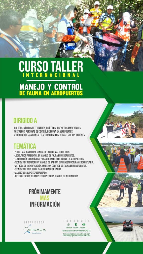 Biólogo por la Universidad Nacional Autónoma de México. Cuenta con 12 años de experiencia en el ramo elaborando/revisando Planes Maestros de Desarrollo, Estudios de Factibilidad Ambiental, Diagnósticos de Riesgo por Fauna y sus Planes de Manejo; participó en el XII CARSAMPAF, Bird Strike North America Meeting de 2011 y 2012, Taller de Estándares Internacionales para Medidas de Mitigación en Peligro Aviario y Fauna de OACI 2013, así como en el Seminario-Taller 2012 Sobre Sostenibilidad y Gestión Ambiental de las Infraestructuras del Transporte Aéreo impartido por AENA. Cuenta con certificación OACI como Instructor, y como Manejador Mundial de Aves por el Instituto de Biodiversidad Tropical.